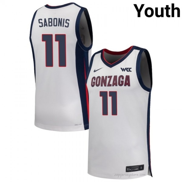 The Heartbeat of The Kennel: GU Bulldogs Domantas Sabonis #11 Youth Elite Performance Jersey | White Collegiate Hoops Edition